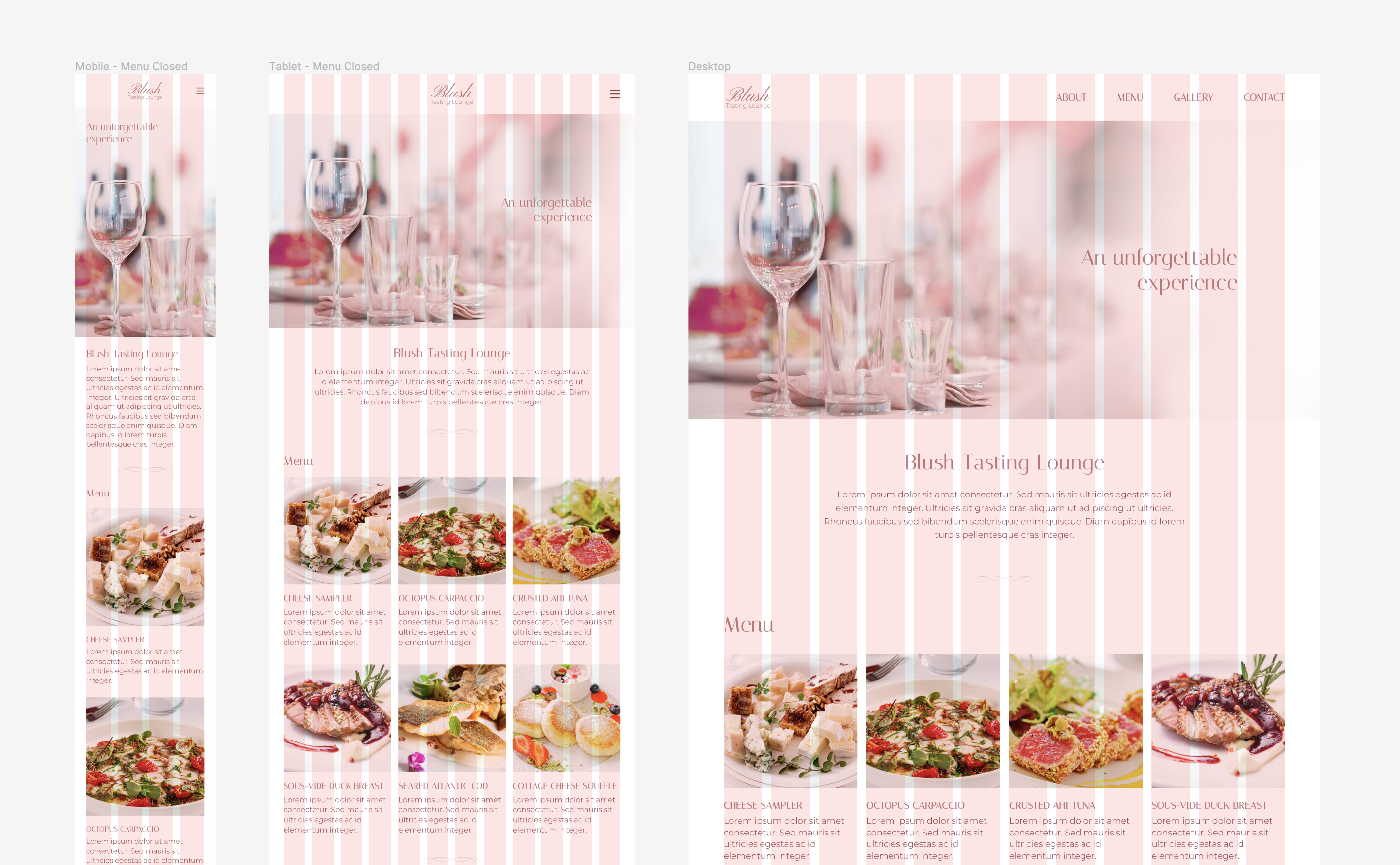 Blush Tasting Lounge was inspired by the atmosphre of luxury and elegance associated with fine dining. Inspiration for the brand was drawn from an image of hydrangea flowers that I found on Adobe Stock, and the flowers also acted as the reference for the colour palette of the website. An elegant serif font was also chosen to complement the sophisticated feel of the brand.