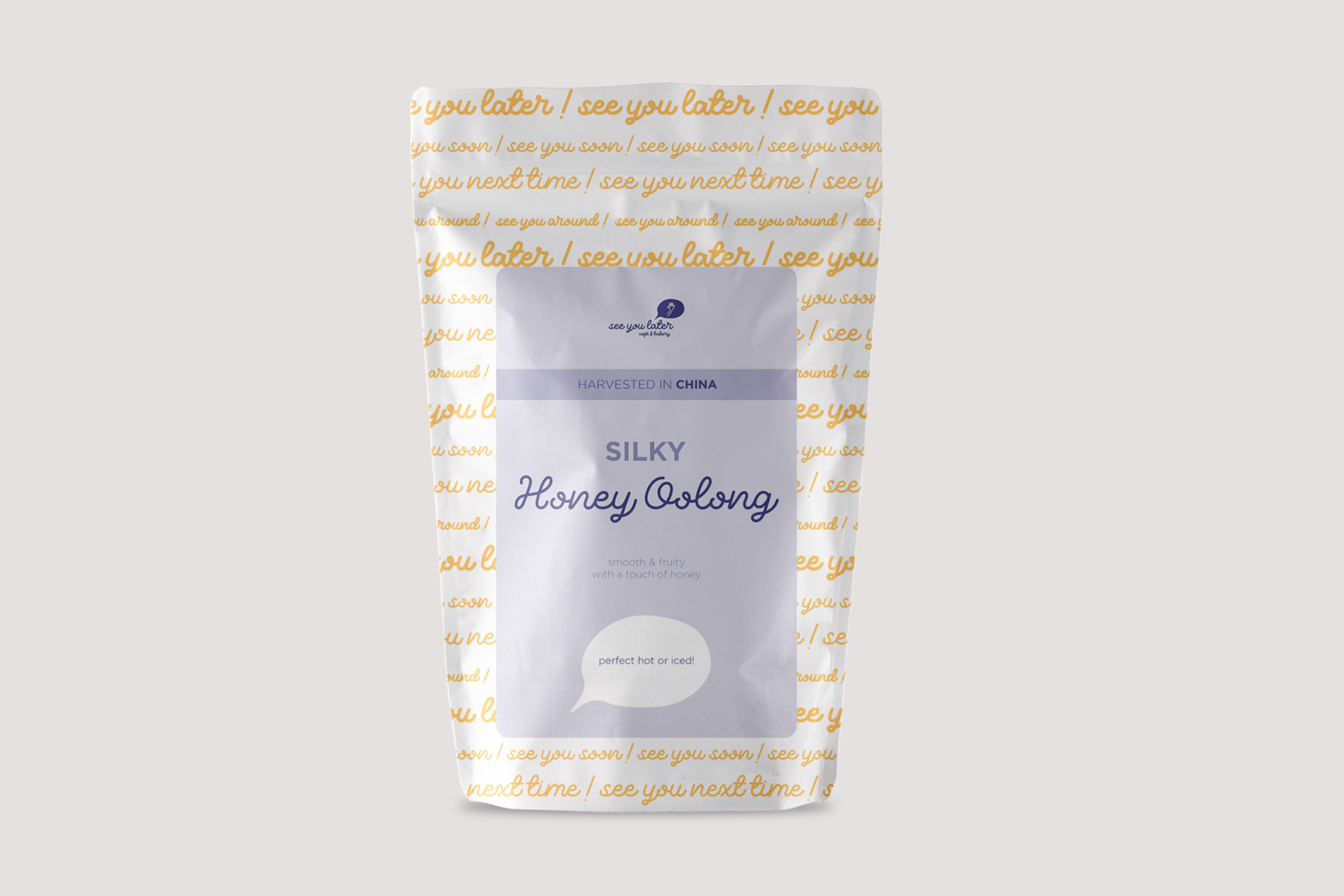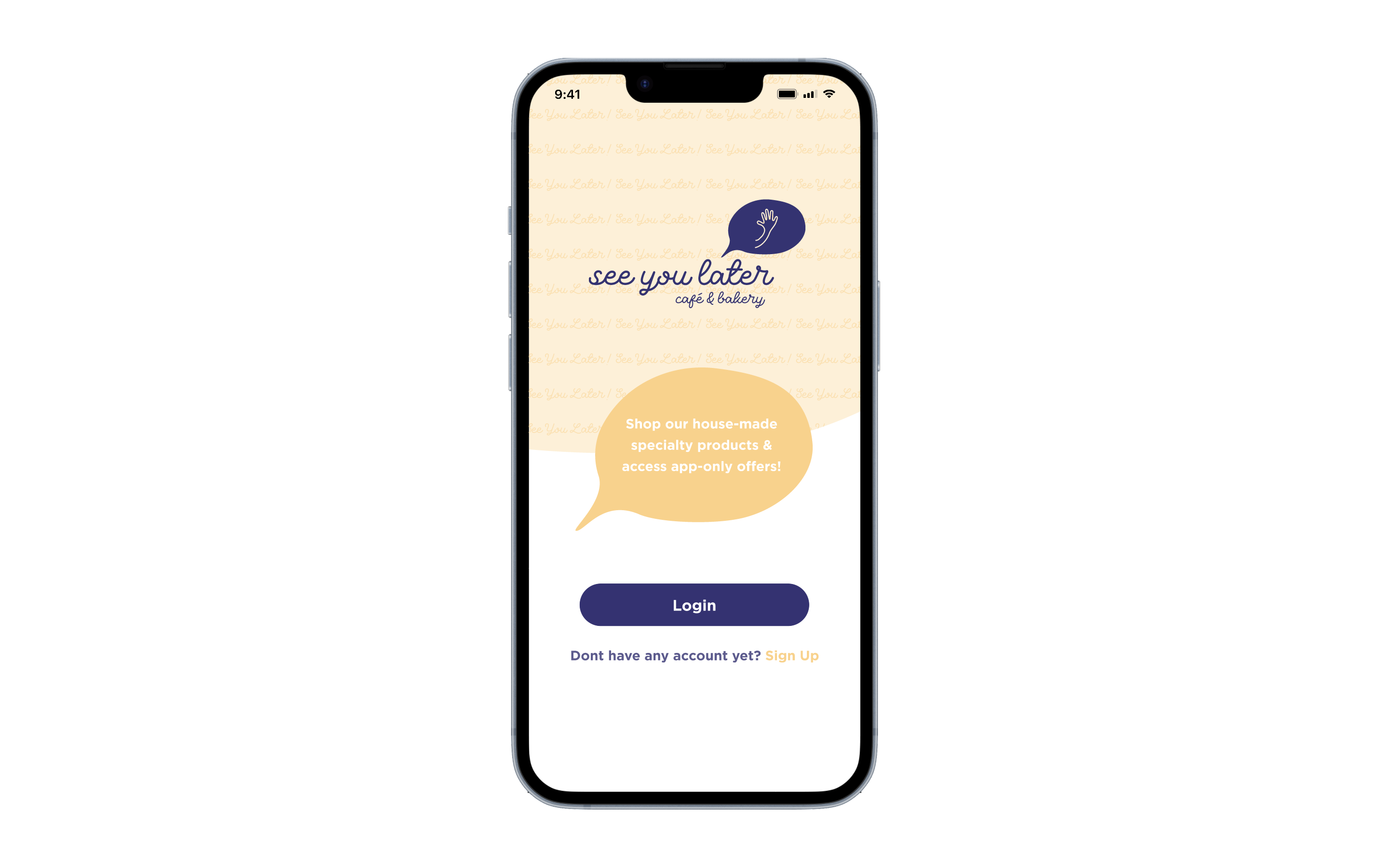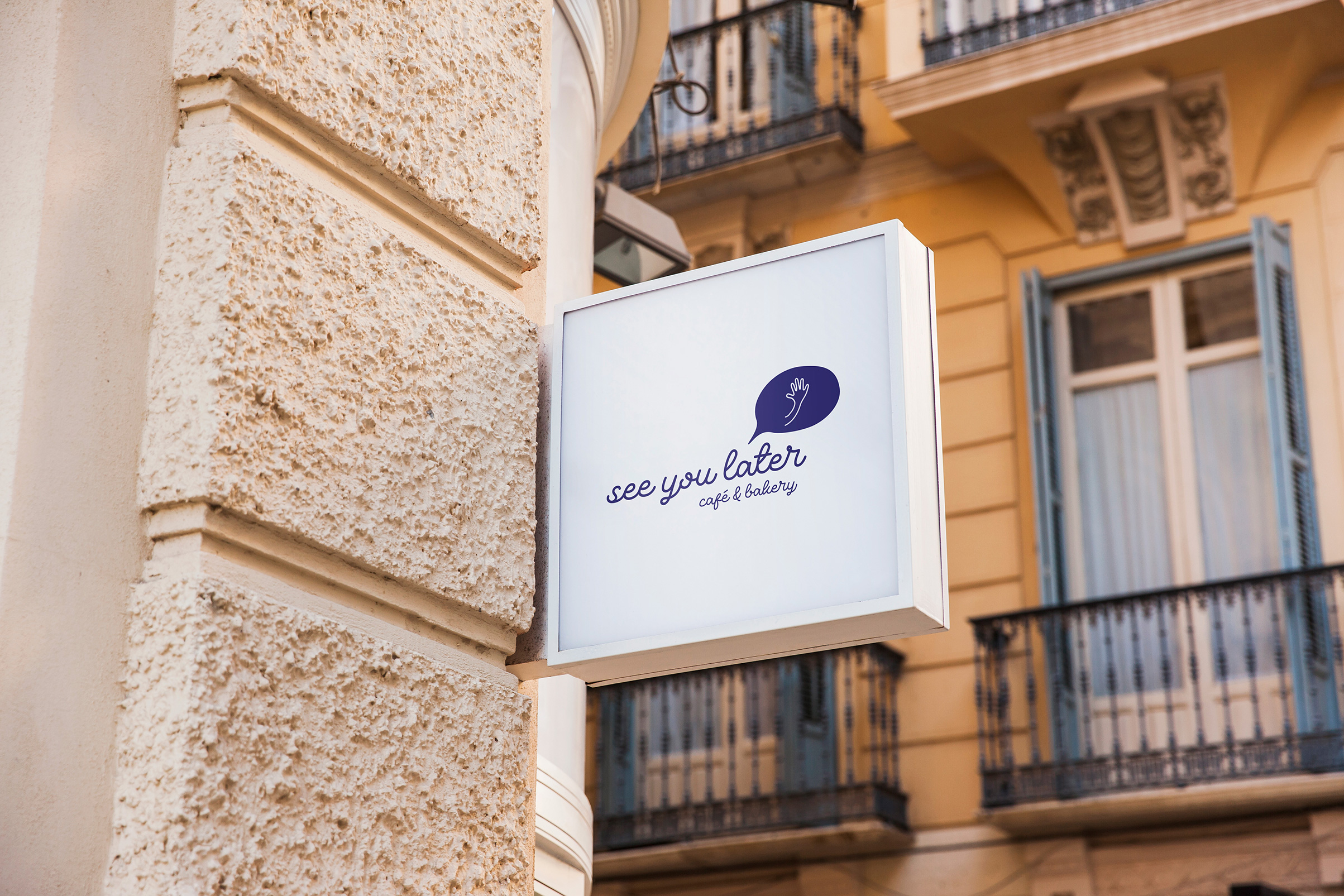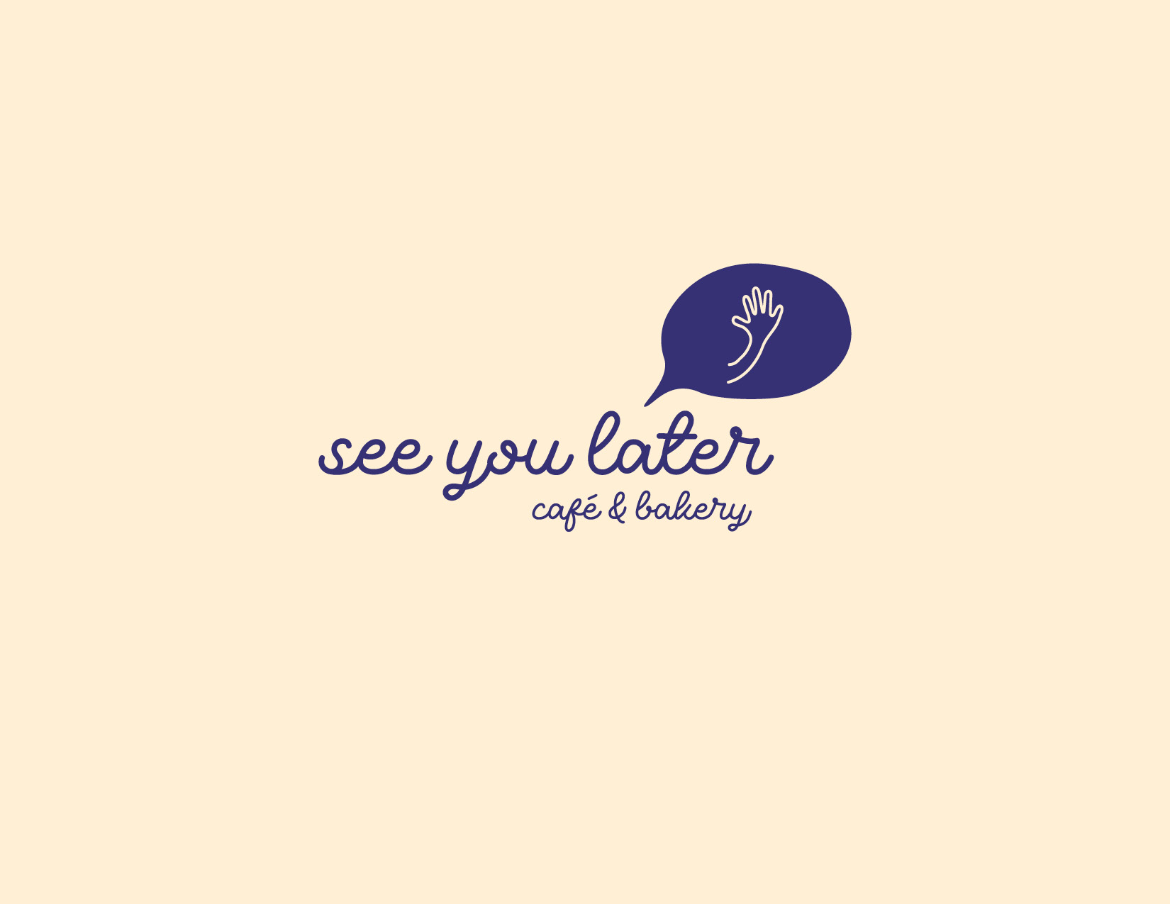 The logo represents the friendly relationship between See You Later and its customers. The waving hand within the speech bubble illustrates the name of the establishment itself, as the welcoming atmosphere will naturally attract returning customers. A hand-drawn style font was chosen to match the cute and charming business.