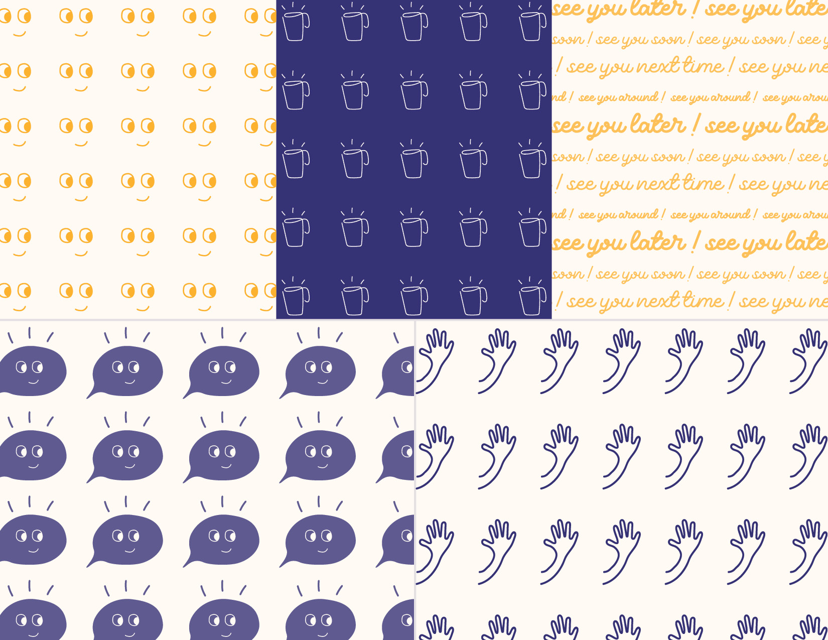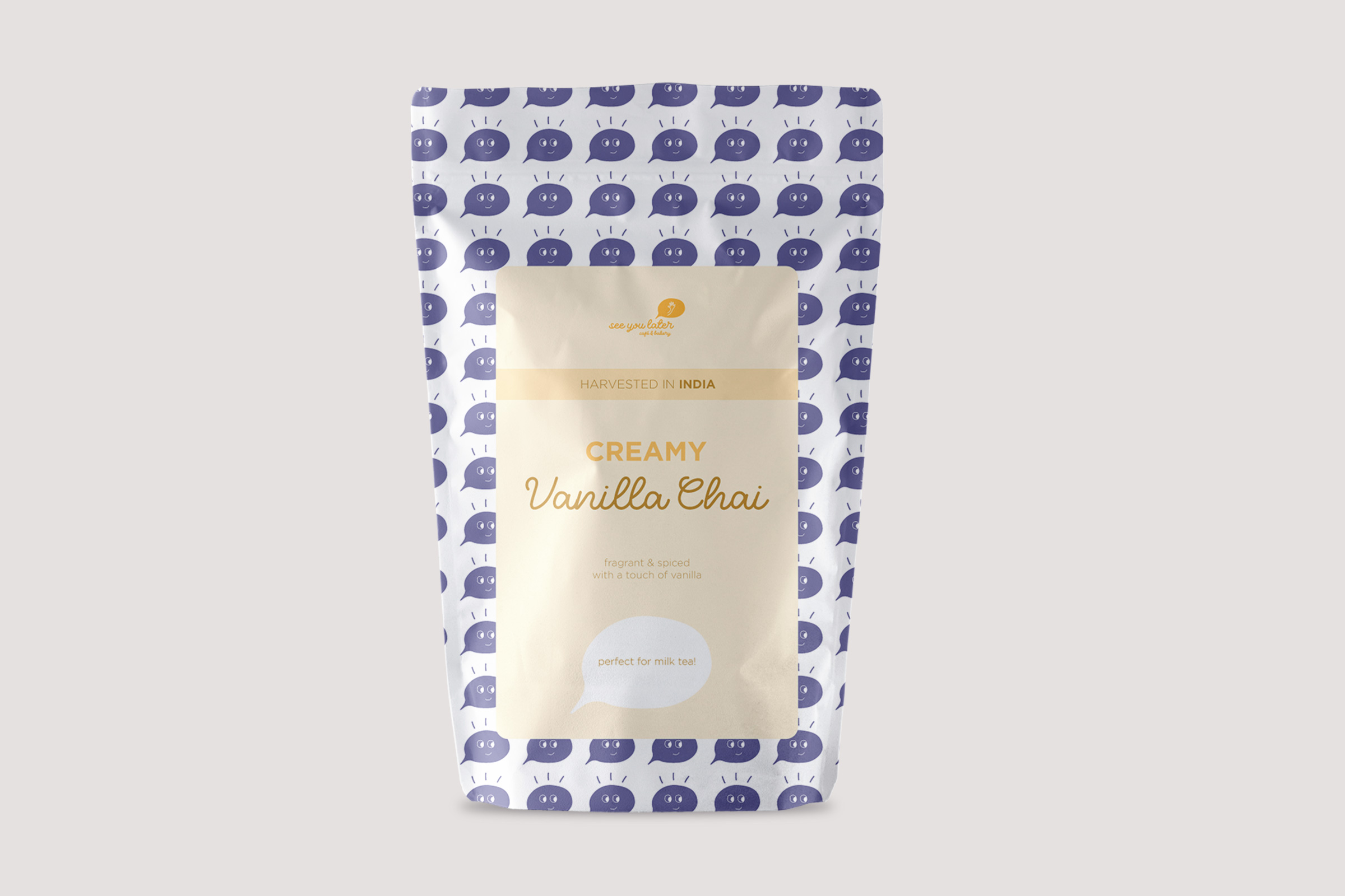 Keeping with the fun and playful mood of the brand, fun illustrated patterns made in Illustrator were incorporated into the packaging. A Photoshop template was used to transfer the 2D Illustrator files onto 3D mockups. Three different coffee roasts & two delicious tea flavours were created.