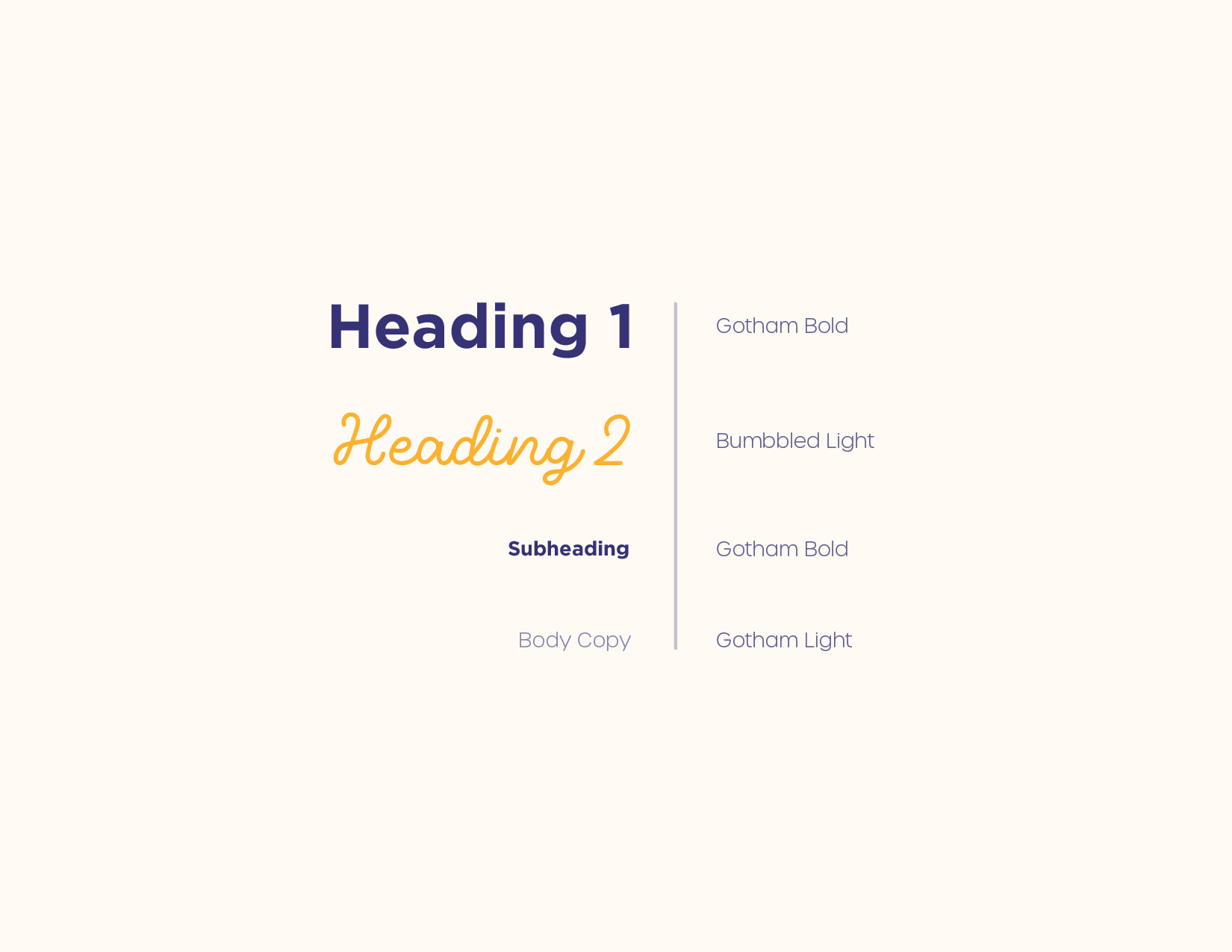 A cute rounded script font was chosen for headings to convey friendliness and hospitality. A clean, sans-serif font was also chosen to provide contrast and legibility for the text. Together they pair together to represent a local brand that is approachable and accessible to its audience.
