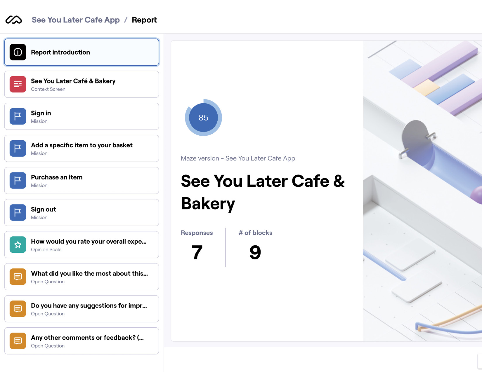 Unmoderated user testing was completed using Maze, in order to identify usability problems and determine the overall user satisfaction for the mobile app.